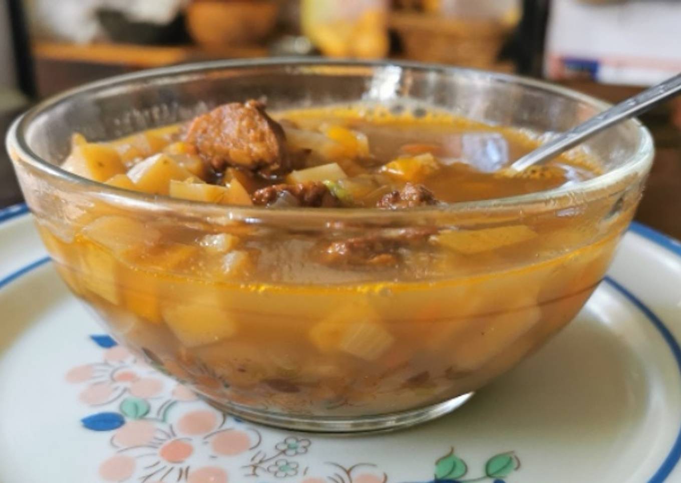 - Añadir el chorizo y las lentejas, agregar agua, sazonar y terminar la cocción.