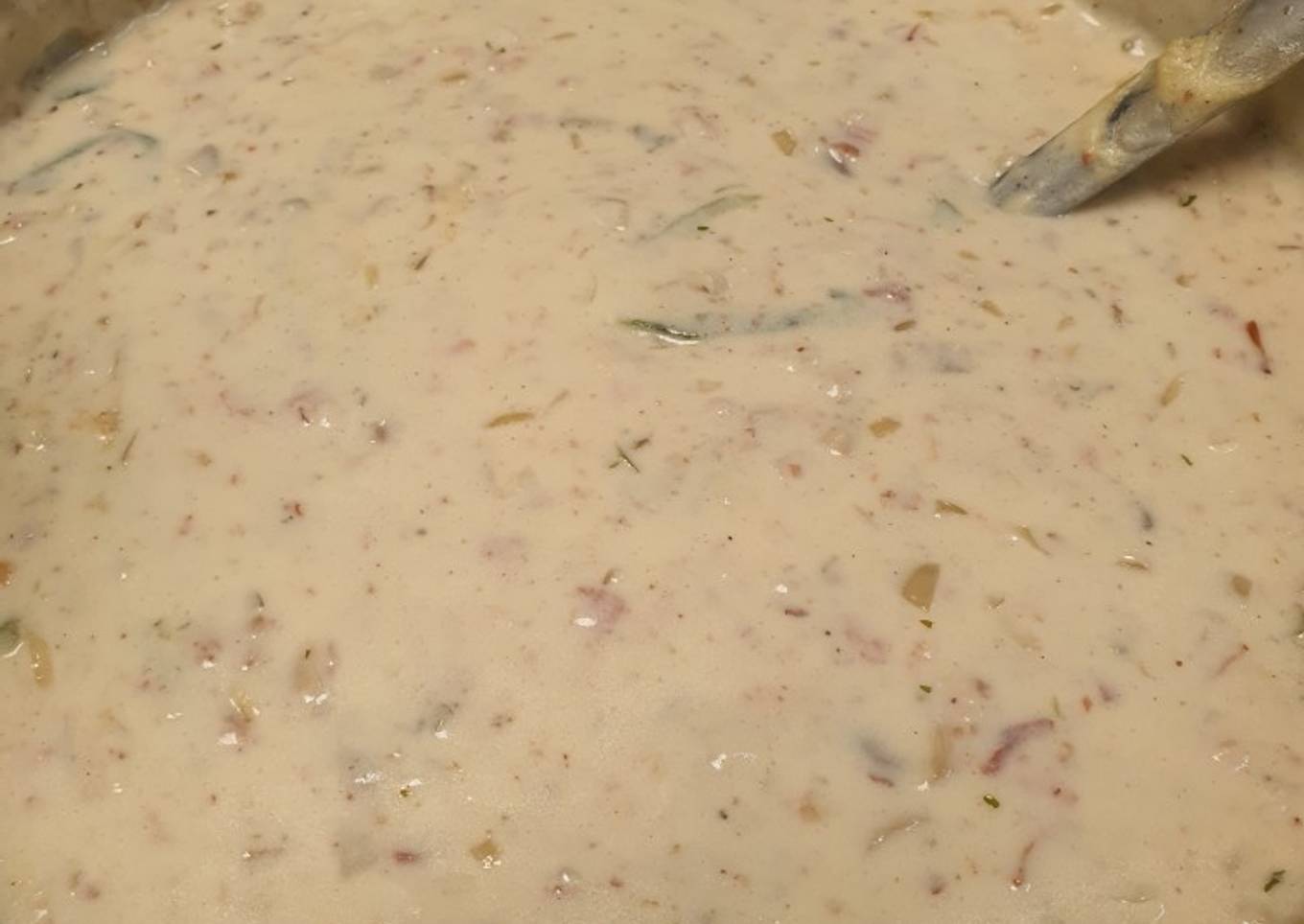 - Agregar la harina con agua y la crema y mover hasta que hierva. Listo!