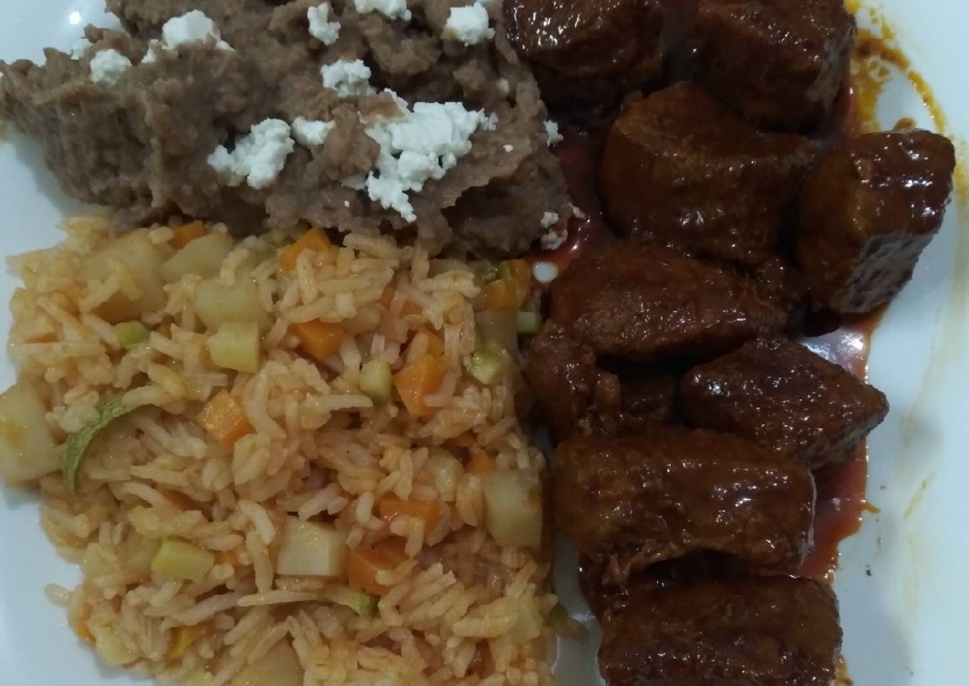 - Ya para el acompañamiento los frijoles y arroz es a su gusto, puede ser arroz rojo o blanco.