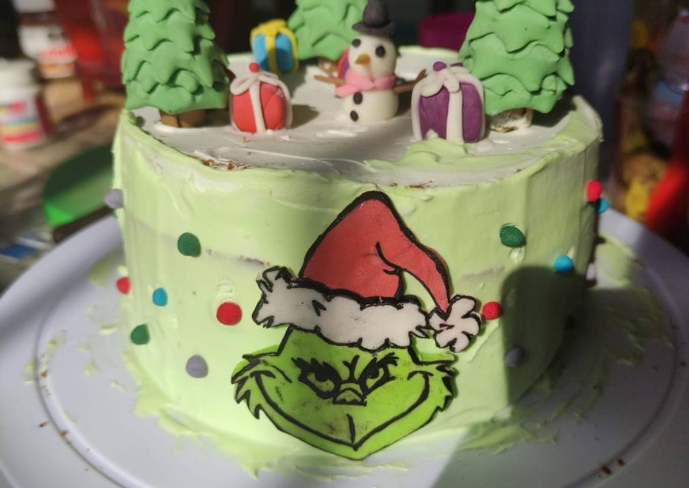 Aprovechando que se acercaba el cumpleaños de un familiar, y que su perdonaje favorito es el Grinch decidí dedicarle este pastel a esa personita tan especial.