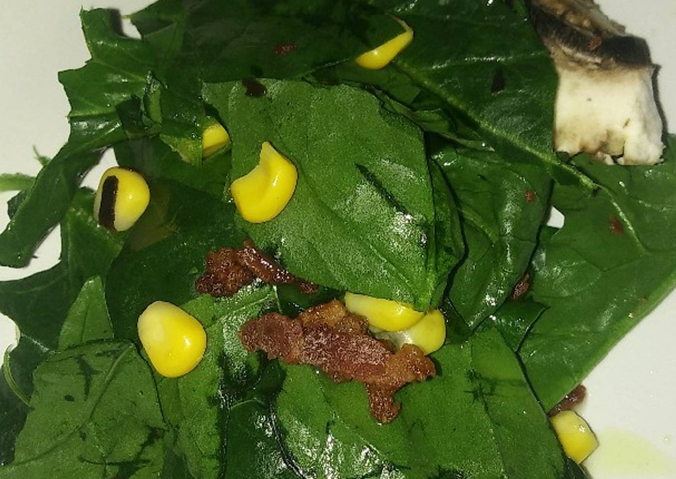 Hello everybody, it's Louise, welcome to my recipe site. Today, I'm gonna show you how to make a special dish, El jardín de las espinacas (Ensalada de espinaca con tocino). It is one of my favorites. For mine, I am going to make it a little bit tasty. This will be really delicious.