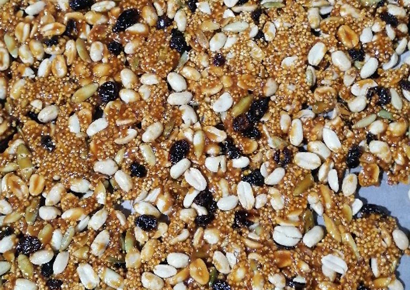 - Mezclar el cacahuate, pasas, amaranto y pepita