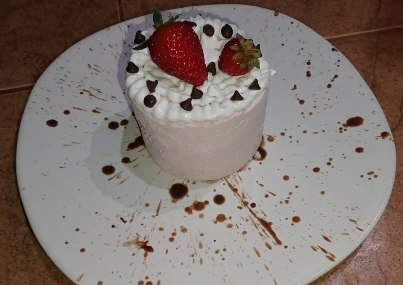 - A la fresa, iremos agregando poco a poco la crema batida, y revolveremos con movimientos envolventes, para que la crema no se baje.