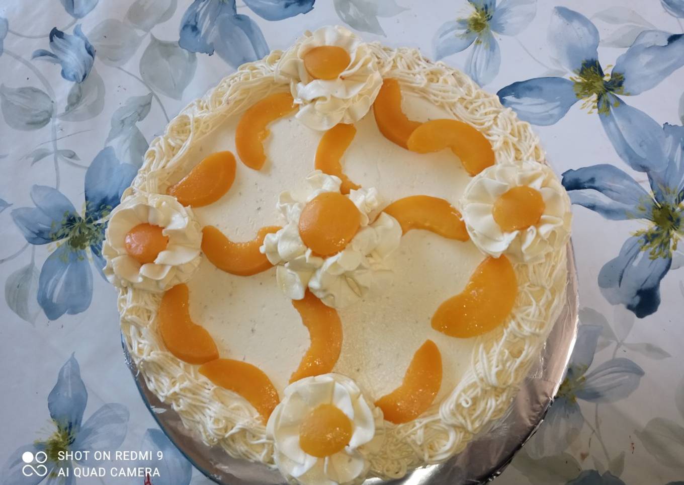 - Cubrir con la crema y decorar para terminar con el durazno en almíbar y listo.