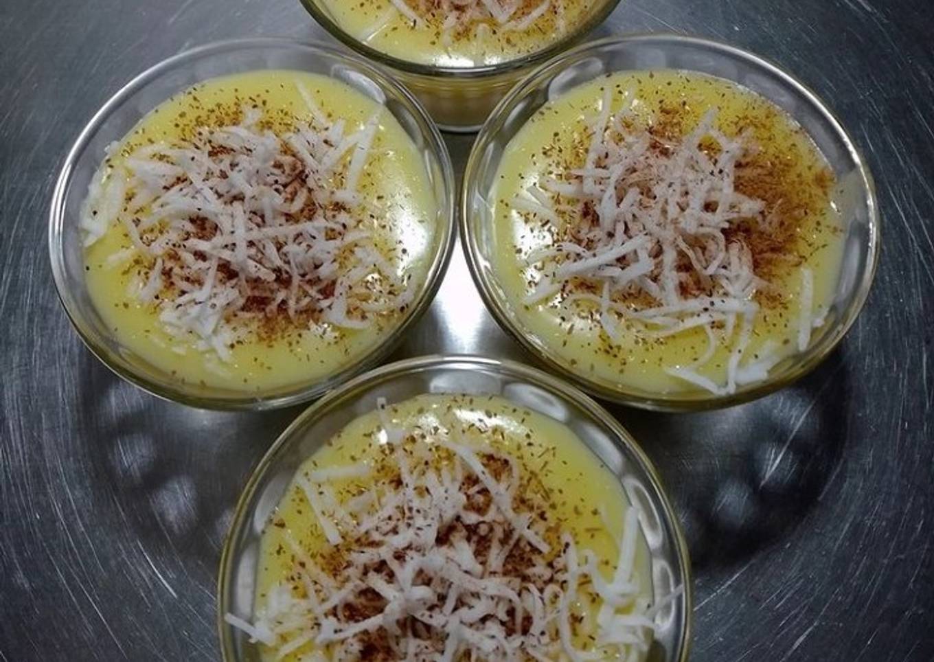 - Servir inmediatamente en recipientes individuales. Se adorna con canela y coco. Dejar enfriar antes de comerse.