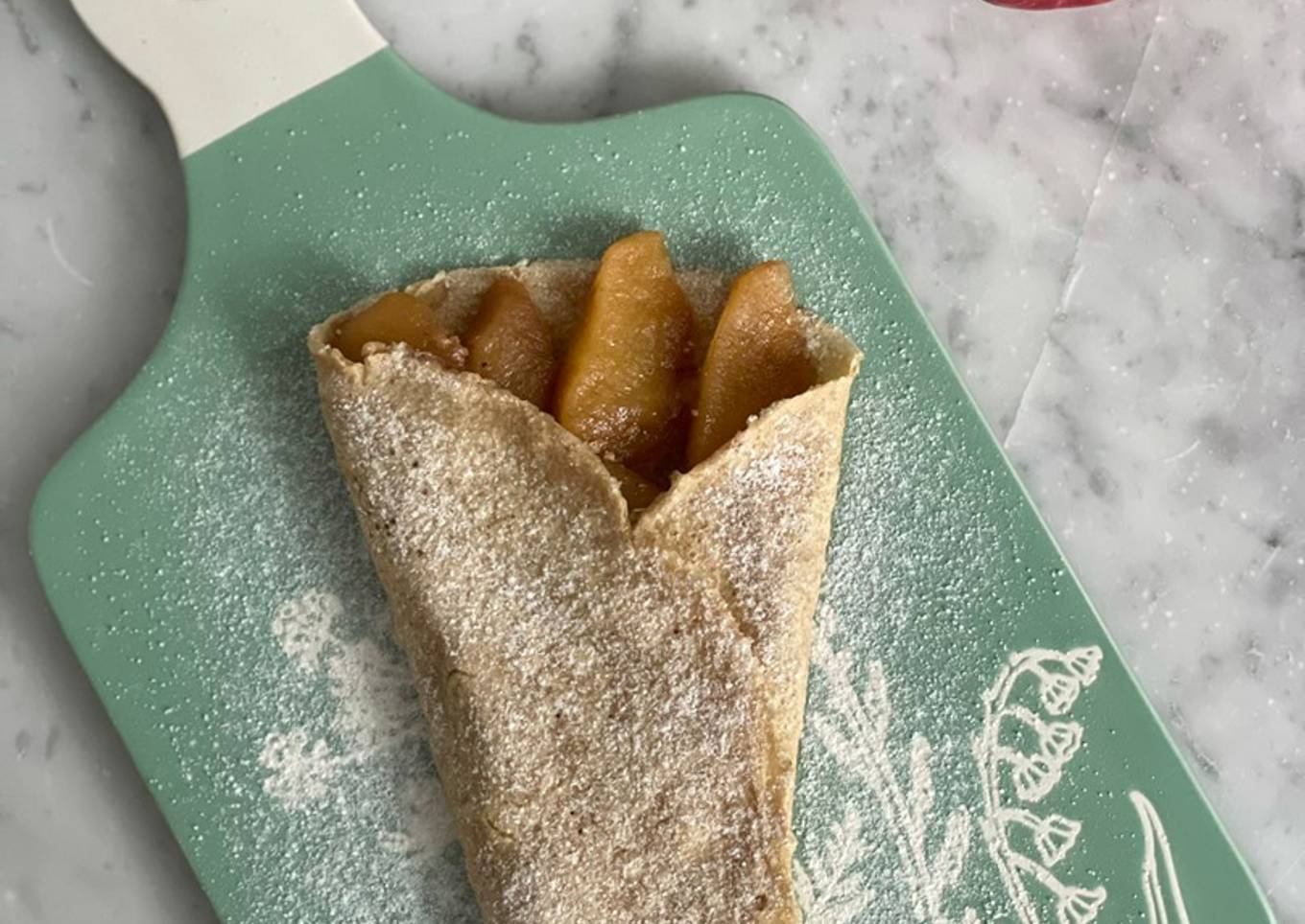 Crepa de avena con manzanas suaves caramelizadas sin azúcar